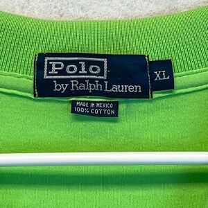 Freshen up your wardrobe with this vibrant RALPH LAUREN men’s polo shirt in a bold green hue. Made from 100% cotton, this shirt features the classic embroidered pony logo, short sleeves, and a timeless collared design. Size XL, perfect for casual or semi-dressy looks.
