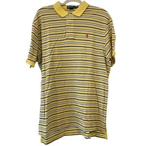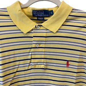 POLO RALPH LAUREN Men’s Shirt Yellow Blue Striped PIMA COTTON Short Sleeve LARGE