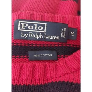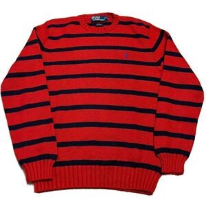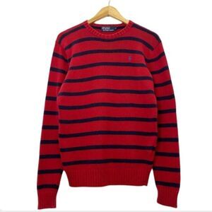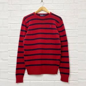 POLO RALPH LAUREN Men's Striped Crewneck Sweater Red Navy M Cotton Classic
