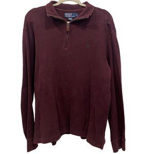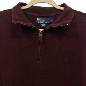 POLO RALPH LAUREN Men's Sweater MAROON RED 1/4 Zip Cotton Pullover Green Logo L