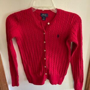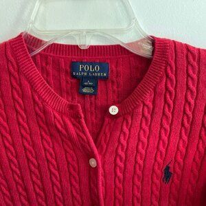 POLO RALPH LAUREN Mini-Cable Cotton Red Long Sleeve Cardigan Large 12-14