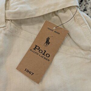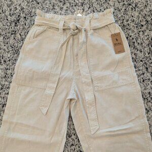 POLO RALPH LAUREN Nwt Belted Jogger 26 Cream Beige Light Tan Khaki Bone --- Linen & cotton blend --- Belted --- Paper bag waist --- High-waisted ---