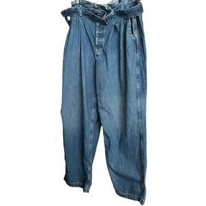POLO RALPH LAUREN "PAPERBAG" JEANS, WOMENS, 32R, WIDE LEG, HIGH-RISE, BELT