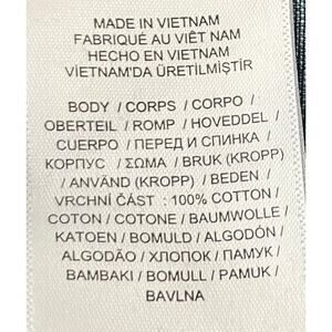 100% Cotton; Recommended on Tag: Machine wash cold gentle, tumble dry low