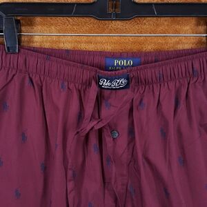 POLO RALPH LAUREN Pajama Pants Mens Medium Burgundy Marron Drawstring Logo PJs