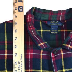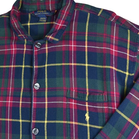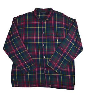 POLO RALPH LAUREN Pajama Shirt Mens XL Flannel Plaid Button Up Cotton Navy