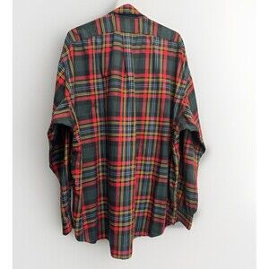 The Polo Ralph Lauren Plaid Checkered Button Down Shirt in XXL features a classic red, blue, and green color scheme with the iconic polo pony embroidered detail. Made from lightweight cotton knit fabric, this shirt is suitable for various occasions including casual wear, workwear, and even parties or cocktails. With a button-down collar and long sleeves, it offers a regular fit for maximum comfort. Perfect for the winter, fall, and spring seasons, this shirt is a stylish and versatile addition to any man's wardrobe.