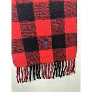 POLO RALPH LAUREN Red Plaid Wool Logo Scarf Muffler O/S One Size Fits All