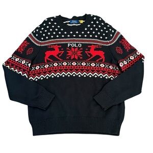 POLO RALPH LAUREN Reindeer Cotton Cashmere Crewneck Sweater Fair Isle Size L NEW