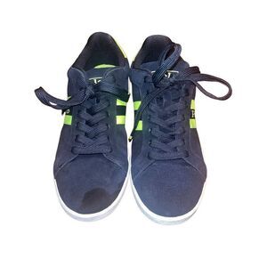 POLO RALPH LAUREN Retro Court Sneaker Shoe Mens Size 7 Neon Green and Navy Suede