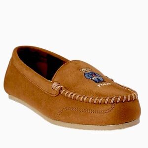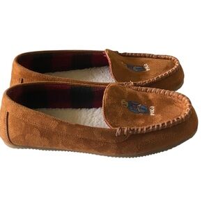 POLO RALPH LAUREN SNUFF DESI V BEAR Brown Suede Moccasins Plaid Lining size 10