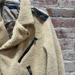 POLO RALPH LAUREN Sherpa Fleece Moto Jacket Leather Trim Women’s Size Large