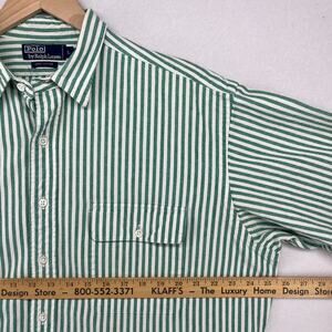 Vintage POLO RALPH LAUREN Shirt Men L Awning Striped Canvas Long Sleeve Cotton Button Up Poplin Green