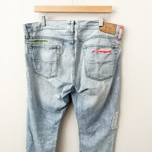 These jeans are so unique and awesome, from POLO RALPH LAUREN! Intentionally distressed, patches in distressed parts. Size 33 x 30.