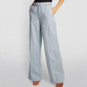 POLO RALPH LAUREN Wide Leg Jeans High-Rise Light Wash Cotton Linen Flare Pant Size 30
