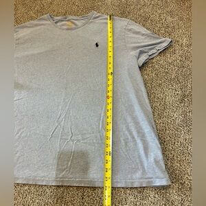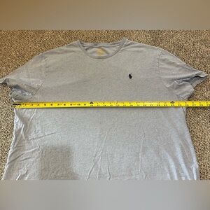 The product is a Polo Ralph Lauren XXL Heathered Gray Short Sleeve Tee. This Regular fit T-shirt is made of cotton material and features a classic Crew Neck and pony character design. With its comfortable size this stylish tee is a great addition to any man's wardrobe, perfect for pairing with jeans or a jacket for a casual yet put-together look. Retail $60.