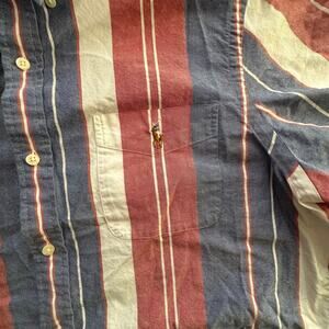 POLO RALPH LAUREN x Classic Fit Red Blue Stripe Short Sleeve Shirt Cotton SIZE L l Classic Fit l Measurements approximate and on flat surface: P2P: 24", Length: 29".
