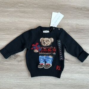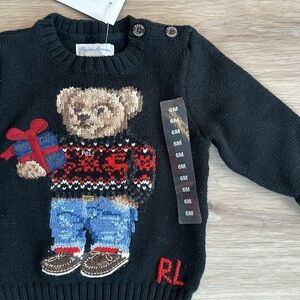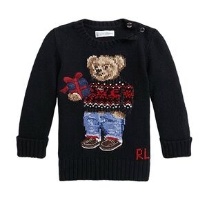Signature Polo Bear and "RL" intarsia-knit at the center front.