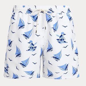 Make waves in style! These POLO RALPH LAUREN swim trunks for boys feature an eye-catching nautical print with blue sailboats and the iconic Polo Bear sailing across a white background. Designed with a drawstring waist, rear pocket with button closure, and interior mesh lining for added comfort.