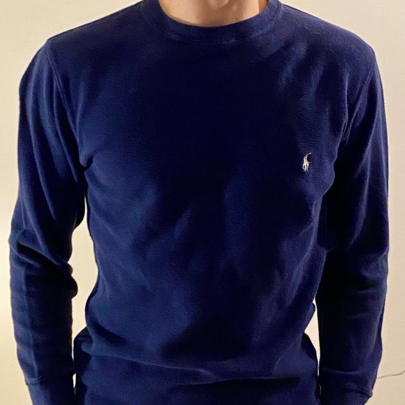 Navy Blue POLO Ralph Lauren Long Sleeved Waffle Textured Shirt. Comfortable with no Marks or Tears. Great quality, originally retails for $45.