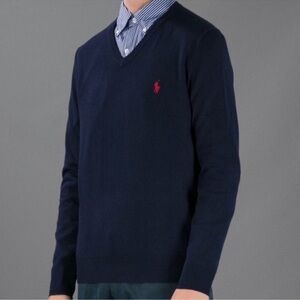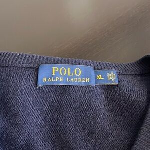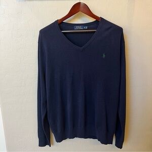 POLO Ralph Lauren 100% Merino wool Men’s V neck pullover sweater, navy blue, XL