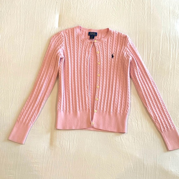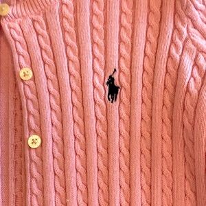 Pink cable knit sweater, with blue Ralph Lauren