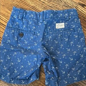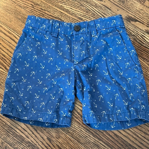 Nautical blue shorts featuring a white anchor pattern. Perfect for outings with your little sailor! 100% cotton, super soft. Like new!