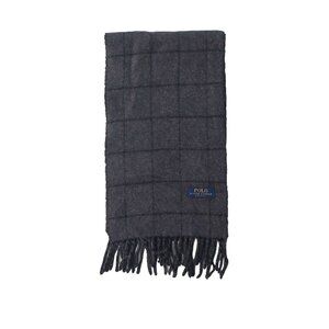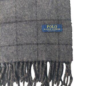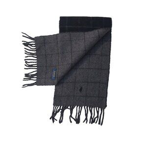 POLO Ralph Lauren Black Gray Reversible Window Pane Scarf Embroidered Polo Logo