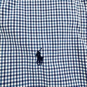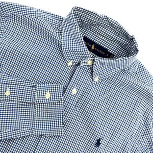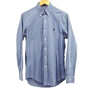 POLO Ralph Lauren Button Down Plaid Blue Checkered Cotton-Pony Logo-Mens Small