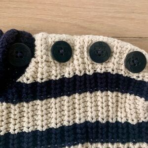 Great chunky knit sweater with buttoned on the shoulder and navy stripes with cream. Great condition, no flaws.