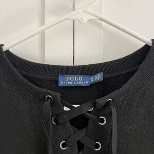 POLO Ralph Lauren Fleecy Sweatshirt Dress w/Lace Up Neck Detail in Black Size XL