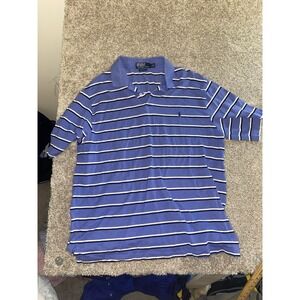 POLO Ralph Lauren Golf Fit Men Pima Cotton Short Sleeve L Blue Stripe Pony Shirt