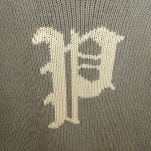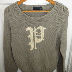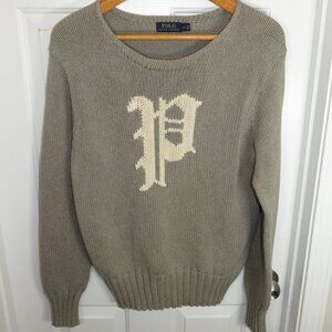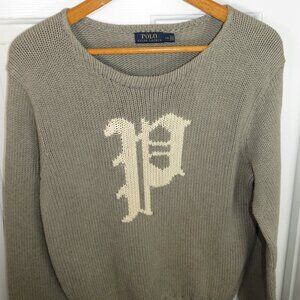 POLO Ralph Lauren Gray Cotton Sweater Ivory Gothic Letter P Round Neck LG
