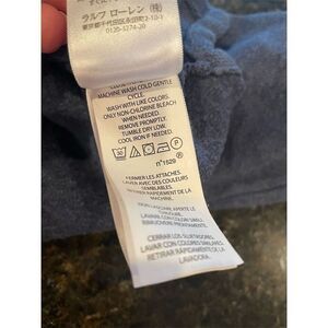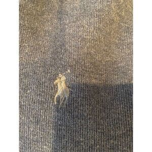 This POLO Ralph Lauren men's pullover sweater in size large features a 1/4 zip design and is crafted from 100% cotton. The blue sweater has a solid pattern with an iconic embroidered logo and soft ribbed fabric, offering a regular fit with long sleeves. Suitable for casual occasions, it is ideal for fall weather. Made in Vietnam, this sweater is machine washable for easy care. The item is pre-owned with normal wear.