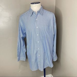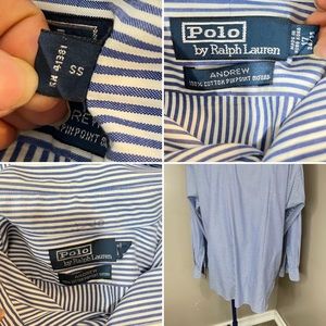 POLO Ralph Lauren Andrew Mens Blue Striped Button Down Dress Shirt Sz 17 (34-35) Cotton pinpoint Oxford