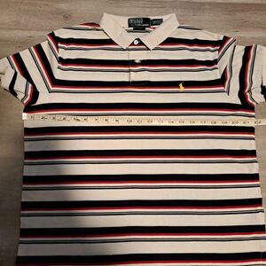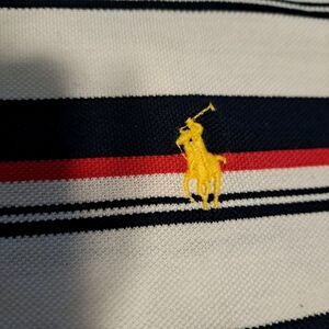 POLO Ralph Lauren Men's Blue White Striped Polo Shirt Custom Fit Size L