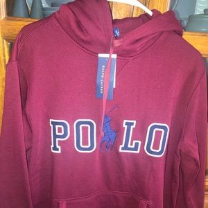 NWT POLO Ralph Lauren Mens Embroidered Logo Fleece Hoodie Medium Maroon Pullover. Condition is New with tags. Ship fast. Color is burgandy/maroon. Please look at all pictures and ask any questions before buying. Size medium.