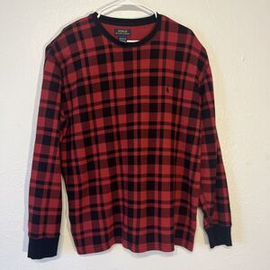 POLO Ralph Lauren Men’s Plaid Pullover Sweater Crew Neck Red with Black Size 2XL