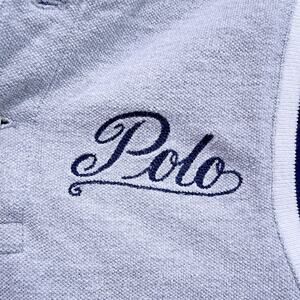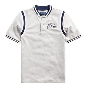 POLO Ralph Lauren Ralphs Tiger Embroidered Shirt Gray Stripe Tipped Boys Small 8