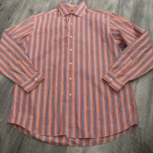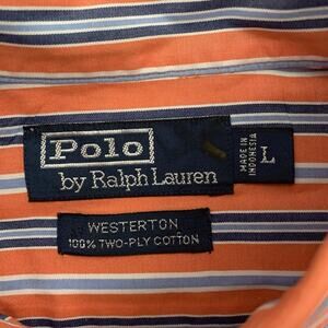 POLO Ralph Lauren Shirt Men Large Orange Stripe WESTERTON 2-Ply Cotton Button Up