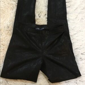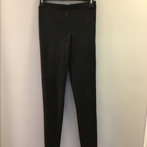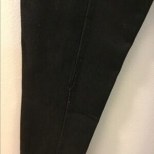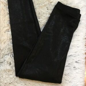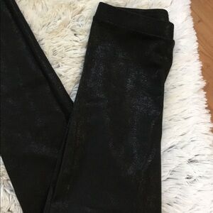 Polo Ralph Lauren Small black legging with metallic shimmer no stains or tears but there is a loose thread in the back leg fabric is thick and there is a seam down the middle back of both legs approximate waist 12 rise 9 inseam 29