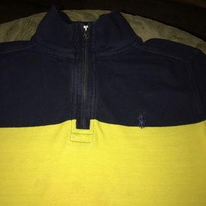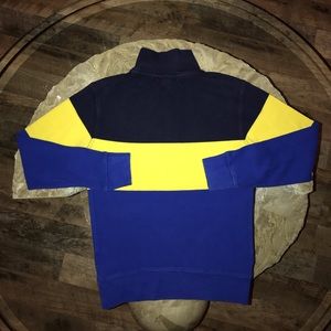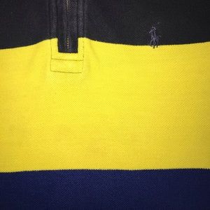 Authentic POLO Ralph Lauren Sweater; Half Zip Sweater; Cotton; Navy/Yellow/Royal Blue; Cotton. Machine washable.