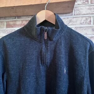 POLO Ralph Lauren Sweater Men's L Estate Rib Charcoal Grey 1/4 Zip (M533)