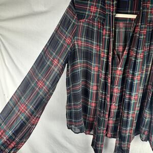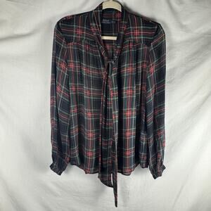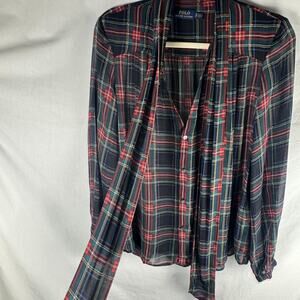 POLO Ralph Lauren Women's Tartan Plaid Sheer Tie Neck Button-Up Top Sz S P