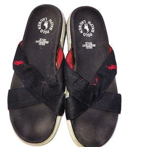 POLO Ralph Lauren blue cotton canvas flip flops sandals 9