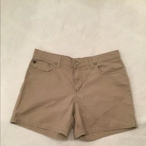 GREAT LOOKING PAIR OF KHAKI COLOR SHORTS WITH FRONT POCKETS & BACK POCKETS