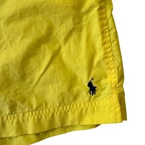 These POLO SPORT swim trunks are men’s XL quick-dry board shorts with a bold yellow color and a 7-inch inseam.