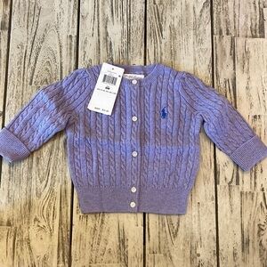 The sweetest addition to your babies closet! NWT purple polo button down sweater, cable knit.