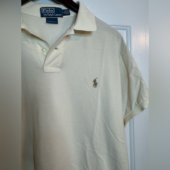 POLO by RALPH LAUREN, size large men’s, cream/ brown polo, excellent condition