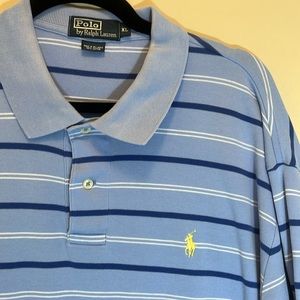 POLO by Ralph Lauren Blue & White Stripes with Yellow Pony Short Sleeve Size XL